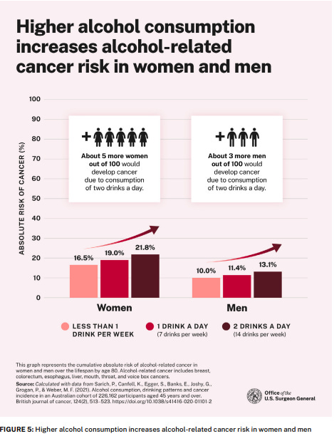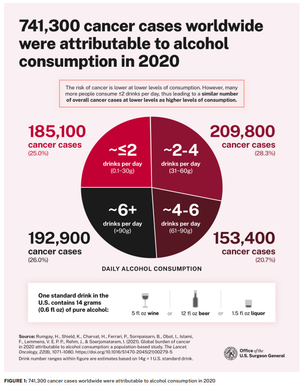 While Australian and Canadian authorities have been focusing on establishing “safe” drinking limits based on cherry-picked “evidence,” the United States’ contribution to “Dry January” was of another kind. Just two weeks ago, US (outgoing) Surgeon Genral Vivek Murthy held a press conference in which he announced a new HHS Advisory on Alcohol and Cancer Risk. The advisory states that alcohol is a “leading preventable cause of cancer and contributes to a hundred thousand cancer cases per year” and concludes by recommending that “the Surgeon General’s health warning label on alcohol products be updated and be placed more prominently on the container.” All of this has purportedly been deduced from “strong causal evidence.” So how strong is that evidence?
